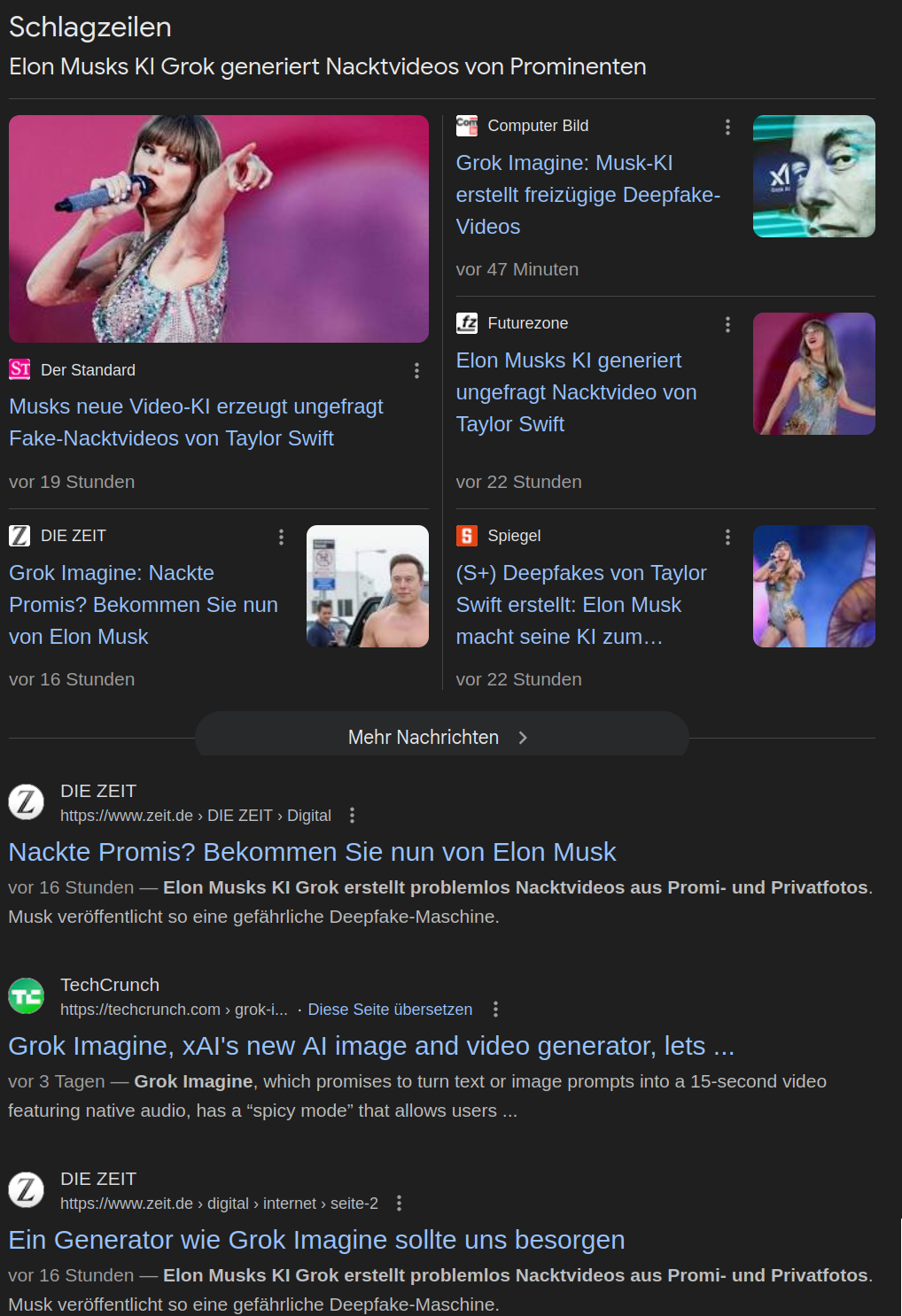 Für die üblichen Medien ist das ein Problem. Aber nur das übliche: Eine Gelegenheit zur Kritik an Elon Musk — und ein wenig „Sex sells“ schadet auch nicht. Was muss man heutzutage nicht alles tun für ein paar Klicks.